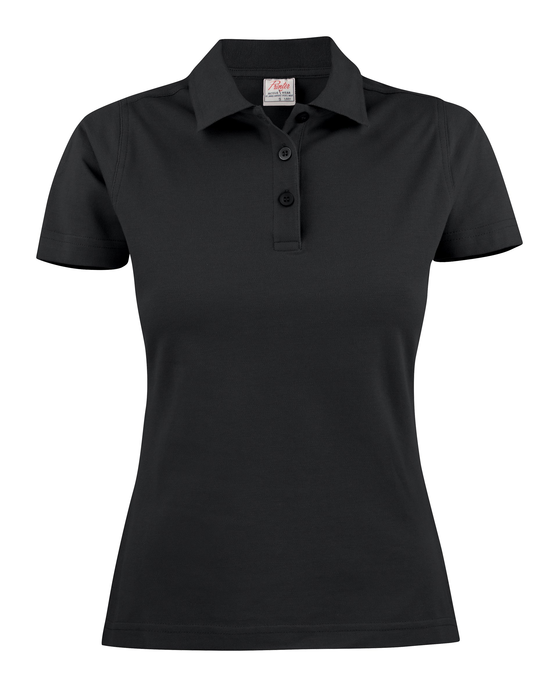 Ladies’ piqué polo with three matching buttons at front placket, neck tape, side slits and cuff at bottom sleeves and chest darts for better fitting.