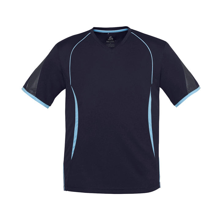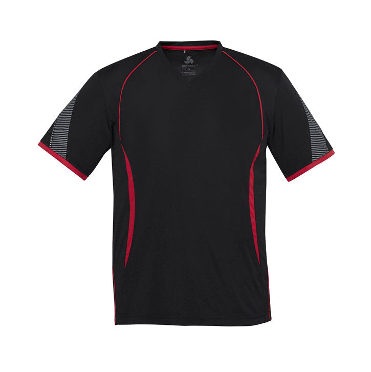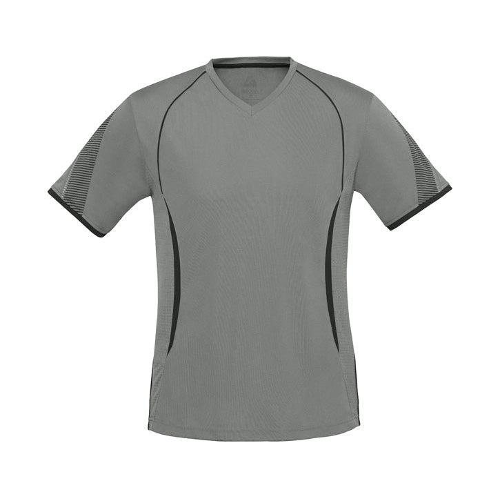 V-neck shape allows extra comfort at the neck and is positioned not too high or low. The BIZ COOL™ performance fabric has extra stretch for optimum active comfort. Grid mesh underarm and side panels for added ventilation and air flow.